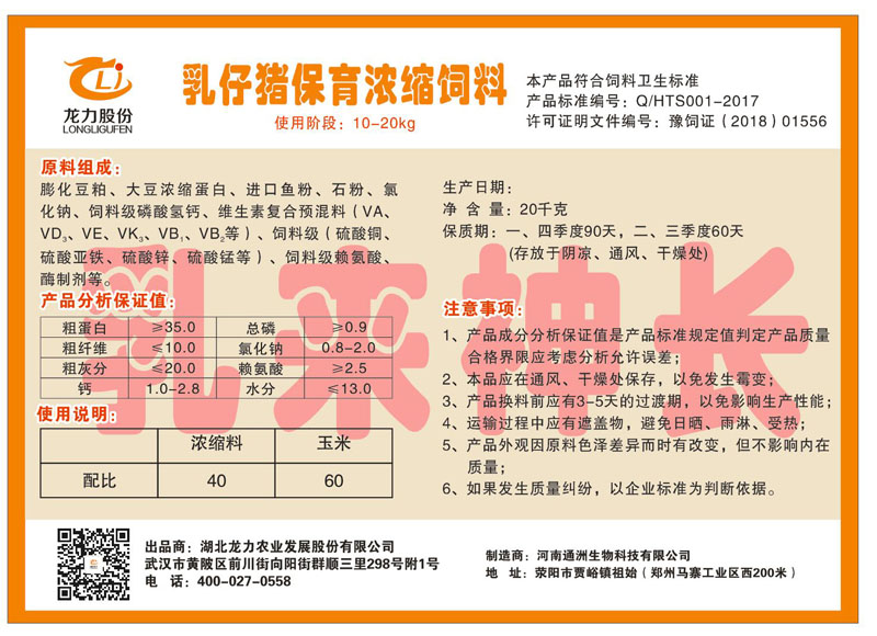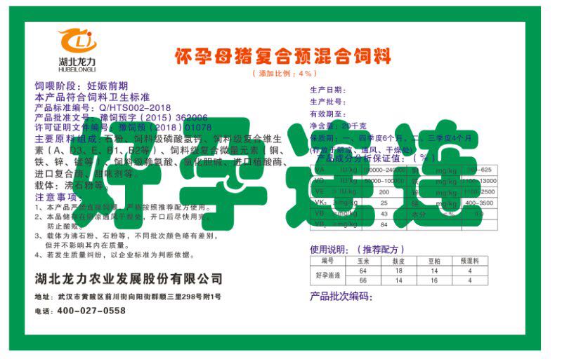 湖北龍力農(nóng)業(yè)發(fā)展股份有限公司坐落于武漢市黃陂區(qū)前川街向陽街群順三里298號(hào)附1號(hào)。公司成立于2014年6月,公司自成立以來把“創(chuàng)全球最大養(yǎng)豬綜合服務(wù)”為企業(yè)愿景。致力于打造教保料品牌”作為公司發(fā)展的明確目標(biāo)。公司一直致力于豬營養(yǎng)的研究和開發(fā),積極與國內(nèi)外高校和科研機(jī)構(gòu)合作,推廣養(yǎng)豬技術(shù)、動(dòng)物營養(yǎng)新概念,向世界農(nóng)牧企業(yè)學(xué)習(xí)與合作。公司采用國內(nèi)先進(jìn)的生產(chǎn)工藝,選擇高精度電子配料秤,高均勻度、無殘留混合機(jī)等先進(jìn)設(shè)備....
